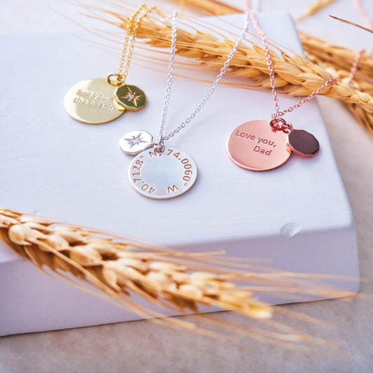 Compass Necklace with Custom Coordinates Gold Number Necklace