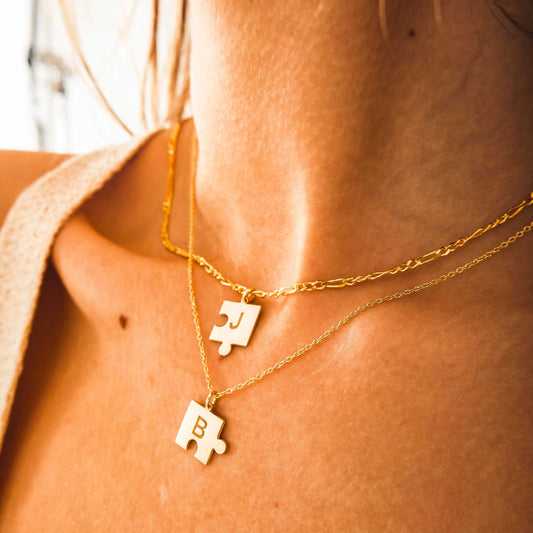 Puzzle Necklace and Matching Soulmate Initial Necklace Gift