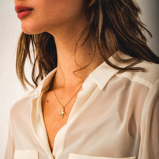 Plane Airplane Necklace with Thin Gold Chain Handmade