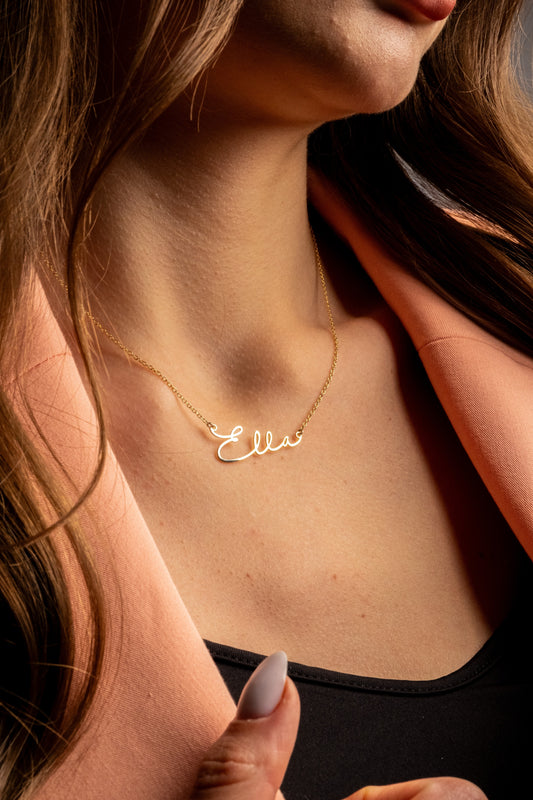 Actual Kids Drawing Necklace and Handwritten Gold Necklace