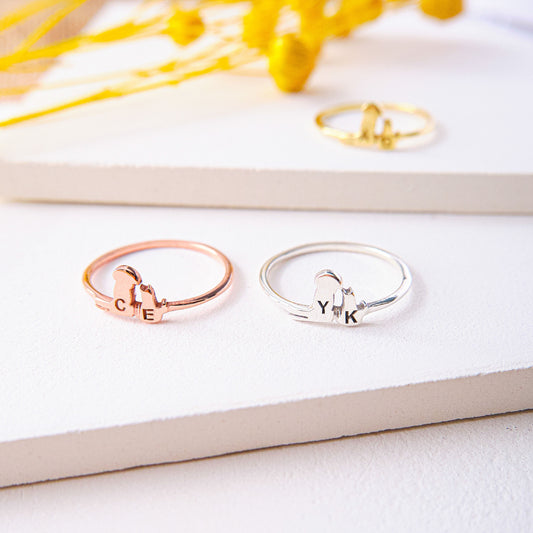 Cat and Dog Dainty Initial Ring Pet Memorial
